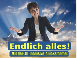 Freuen Sie sich also auf interessante Einzelheiten und über das beruhigende Wissen, dass Domogala sich kümmert! Genießen Sie einen Abend lang „Endlich alles!“ – das müheloseste Coaching überhaupt mit einer Trainerin, die hält, was sie verspricht: „Sie gehen nachher nach Hause und kennen sich selbst nicht mehr!“