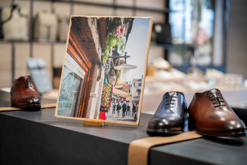 Die Arbeiten verteilen sich im gesamten Schuhhaus. Besucher:innen sind eingeladen, sich auf eine kleine Reise durch Venedig zu begeben – zwischen Schuhen und handgefertigter FotoKunst. Venedig ist mehr als eine Stadt- es ist ein Lebensgefühl.