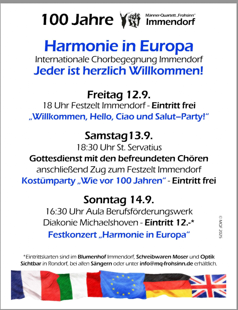 Am Samstag, 6. September, ab 14 Uhr lädt die Evangelische Kirchengemeinde Rodenkirchen herzlich zum Gemeindefest auf die Wiese und den Kindergartenparkplatz an der Erlöserkirche, Sürther Straße 34 ein. Bei Andacht, Musik und einem abwechslungsreichen Programm für alle Altersgruppen wird bis in den Abend gemeinsam gefeiert. Freuen können sich die Gäste auf Kaffee und Kuchen, Pommes […]