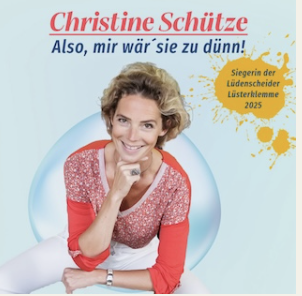 Christines aktuelles Programm „Also, mir wär sie zu dünn!“ wird landauf, landab vom Publikum gefeiert („Sie haben Bodo Wartke aus meinem Herzen verdrängt!“, „intelligent und berührend“, „das Beste in den letzten 20 Jahren“) und ist gerade mit einem Kabarettpreis, nämlich der „Lüdenscheider Lüsterklemme 2025“, ausgezeichnet worden. Die Presse schrieb dazu: Christine Schütze beschert uns eine Sternstunde des Kabaretts. Klar, […]
