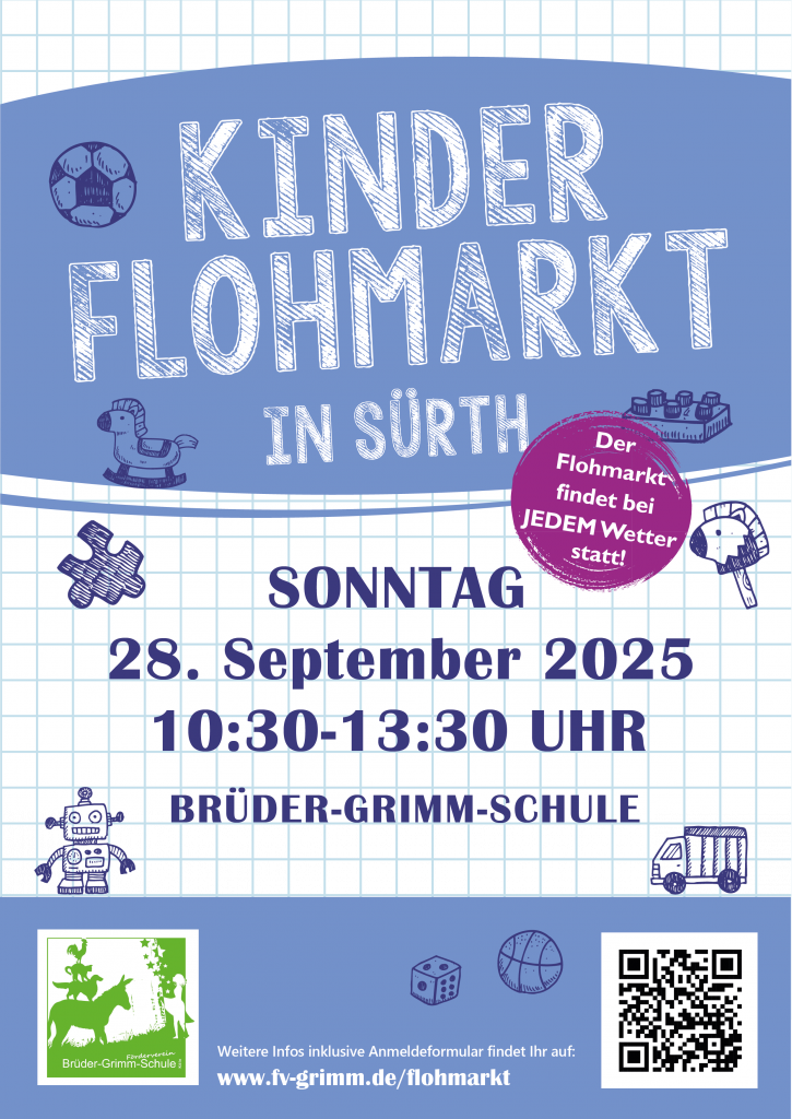 Am Sonntag, 28.September 2025, findet auf dem Schulhof der Brüder Grimm Schule (BGS) der nächste Flohmarkt statt! Für eine kleine Stärkung sorgt eine Cafeteria mit leckerem Kuchen sowie kalten und warmen Getränken.Dieser Eintrag wird Ihnen zur Verfügung gestellt vom Kölner BilderBogen - eines der beliebtesten Stadtmagazine in Köln. Ihr Termin fehlt? Einfach kostenlos einreichen: www.bilderbogen.de/eventeintrag