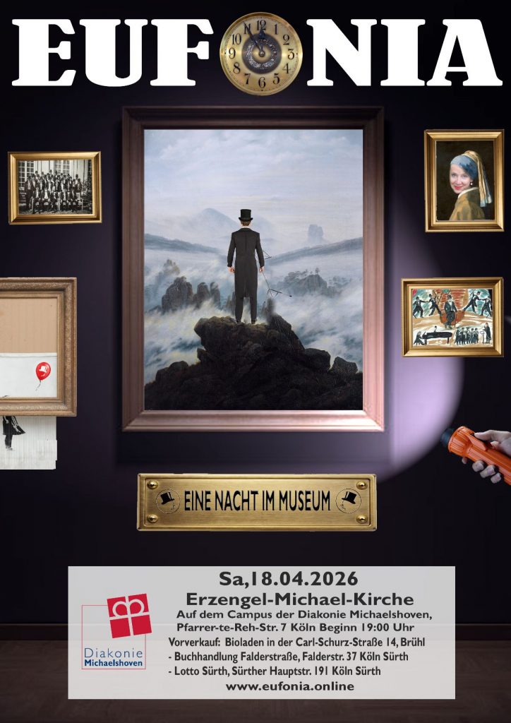 Was passiert, wenn Elvis auf Caspar David Friedrich trifft, Max Ernst dem Taktstock zuzwinkert und Edvard Munch plötzlich Kasalla mitsummt? EUFONIA präsentiert: Eine Nacht im Museum „Sehr verehrtes Publikum, das Museum schließt in wenigen Minuten… “ Mit ihrem neuen Programm laden die Eufonisten Sie herzlich ein, ihnen auf einer Museumsführung der ganz besonderen Art zu […]